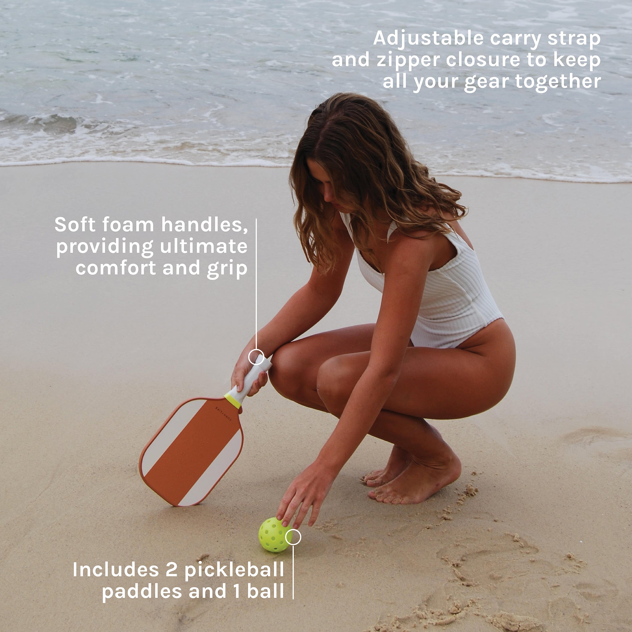 Get ready to play away the day in style. The Pickleball Set is ultra-trendy and high quality, designed to make a statement and have you winning on the court. Comes complete with two wooden pickleball paddles, one branded SUNNYLiFE ball, and a handy carry bag, grab a partner, hit the playing court, and serve up some serious fun. Turn heads and ensure this season is one to remember.