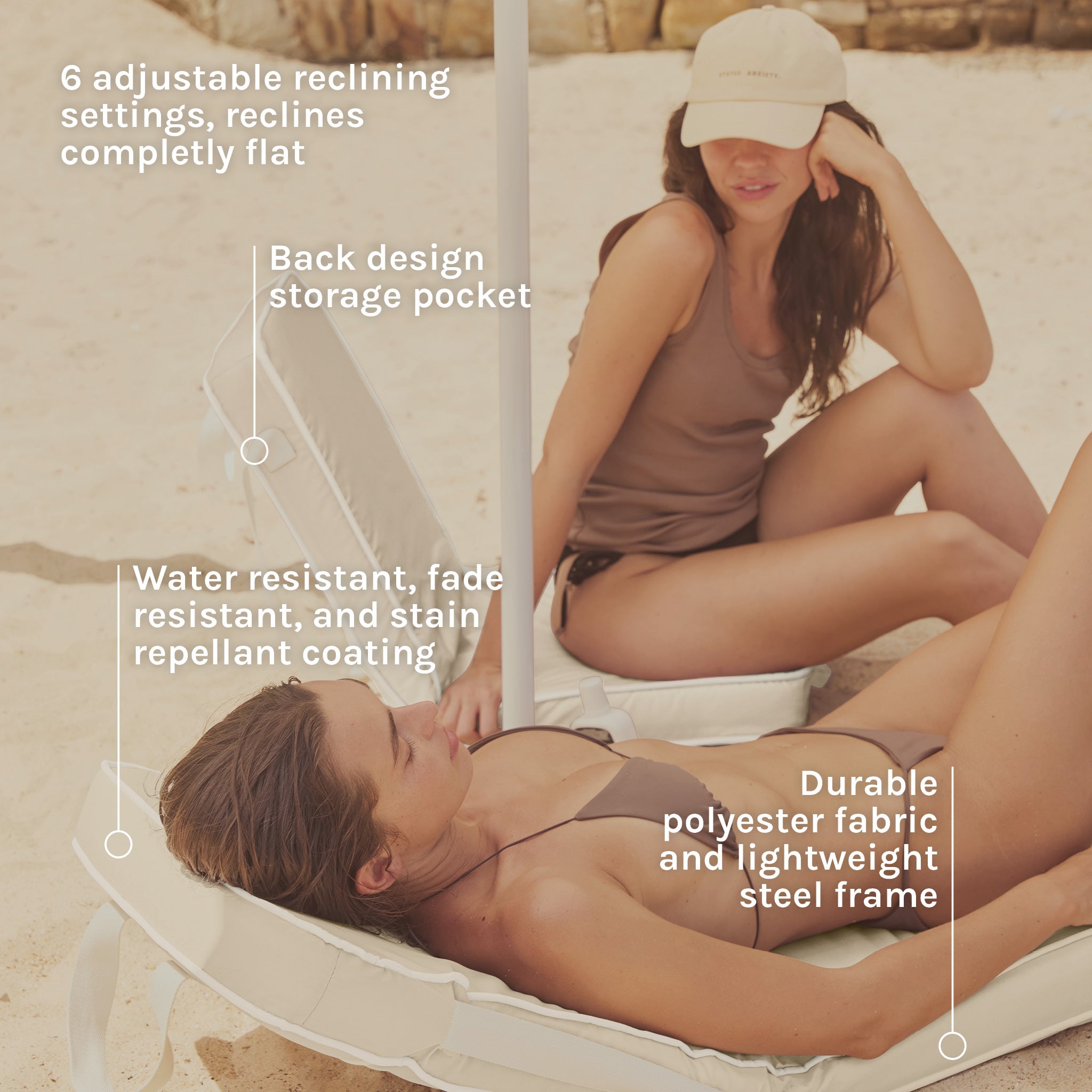 Recline in comfort with our new outdoor seat. The Take Anywhere Folding Chair is designed for ultimate lounging; it's portable and perfect for sitting or lying back.