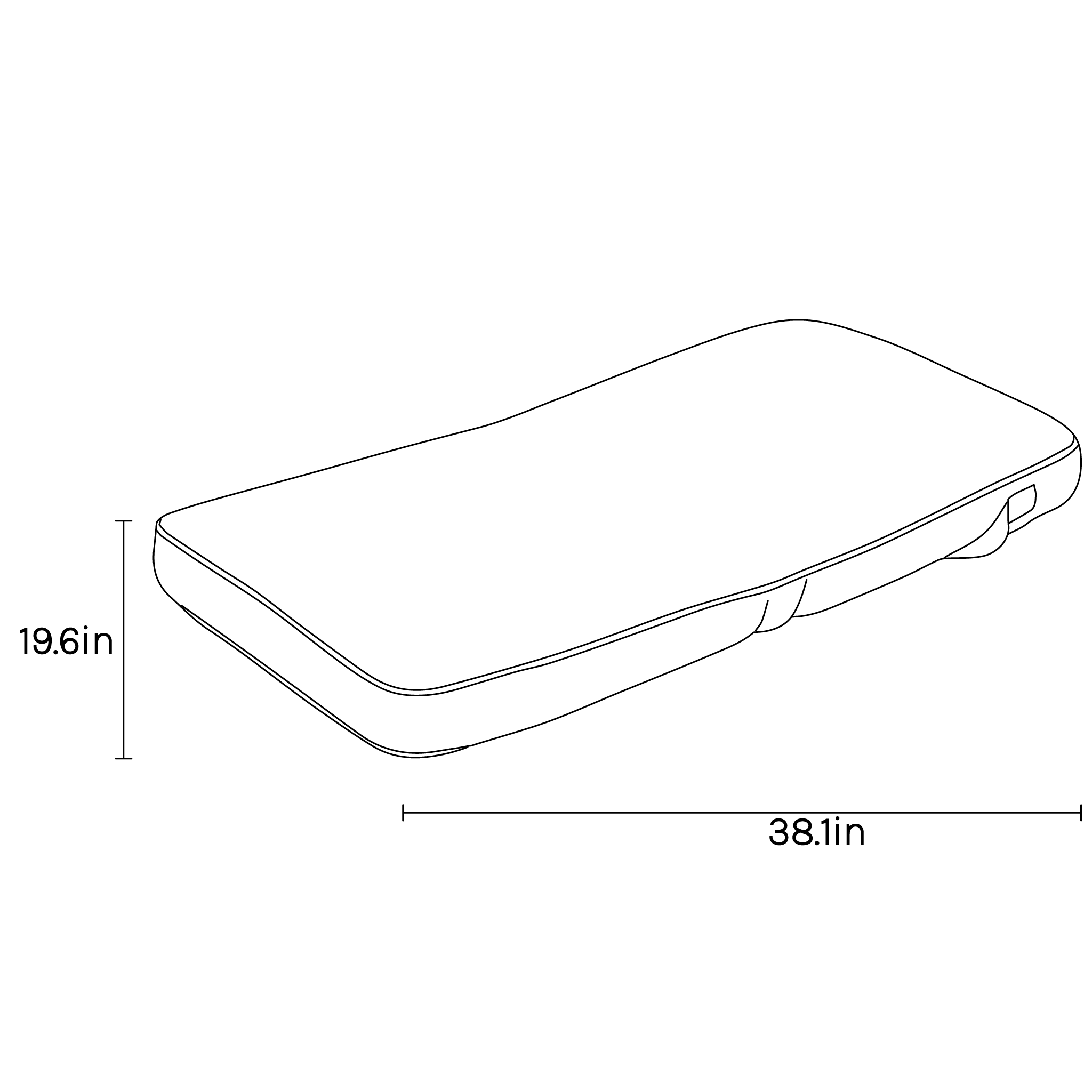 L 97 W 50 H 8 cm | L 38.19 W 19.69 H 3.15 in