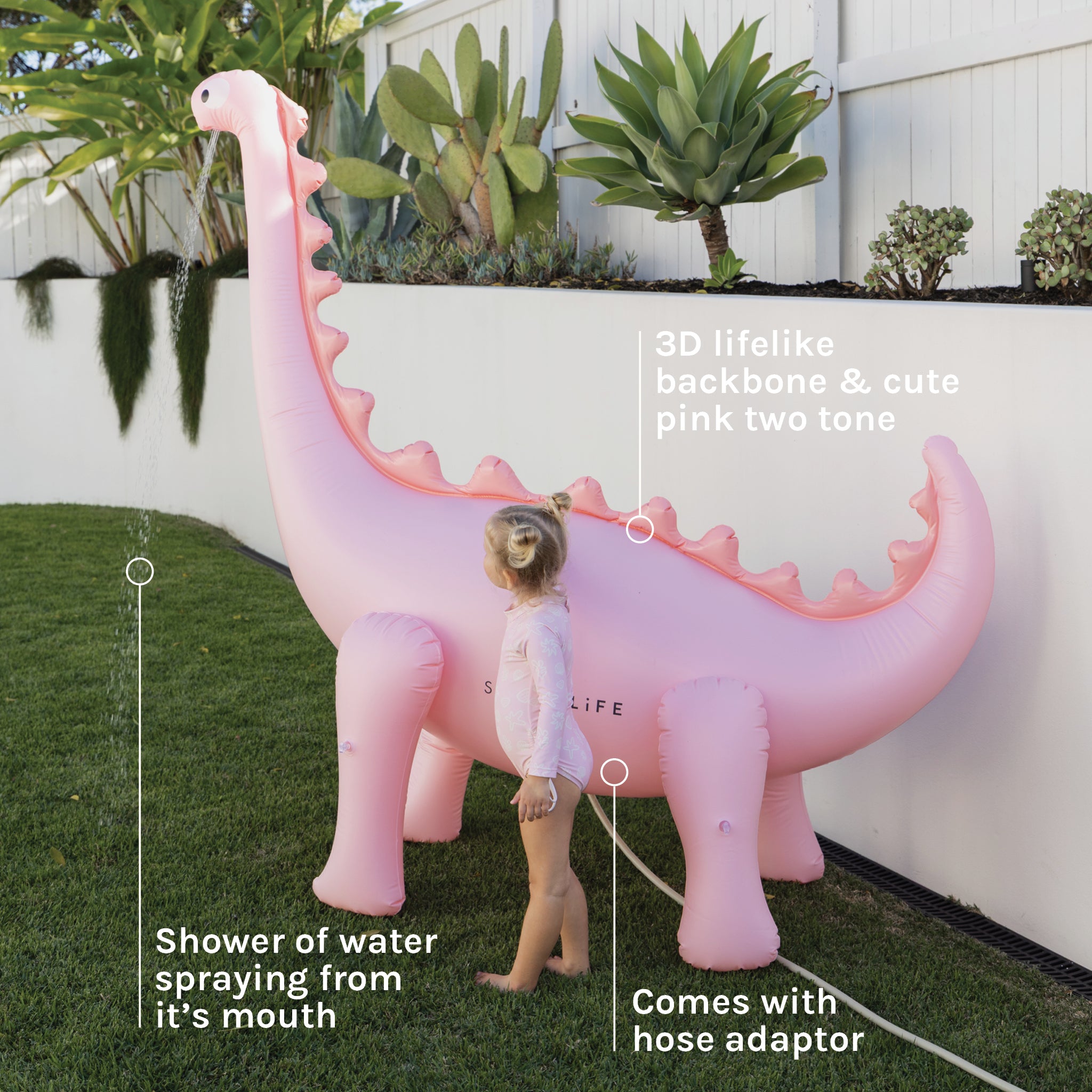 Sprinkle some fun for your little ones. The Into The Wild Dino Giant Sprinkler is designed to refresh hot summer days and provide hours of water filled playtime. Standing tall and proud at over 6 feet, this larger-than-life inflatable sprinkler is sure to be a hit with kids and adults alike. Simply attach to your garden hose and play beneath the sun shower of water spraying from its mouth. Every little one needs a summer companion and this one will definitely turn heads with its 3D lifelike backbone and cool khaki green hue.