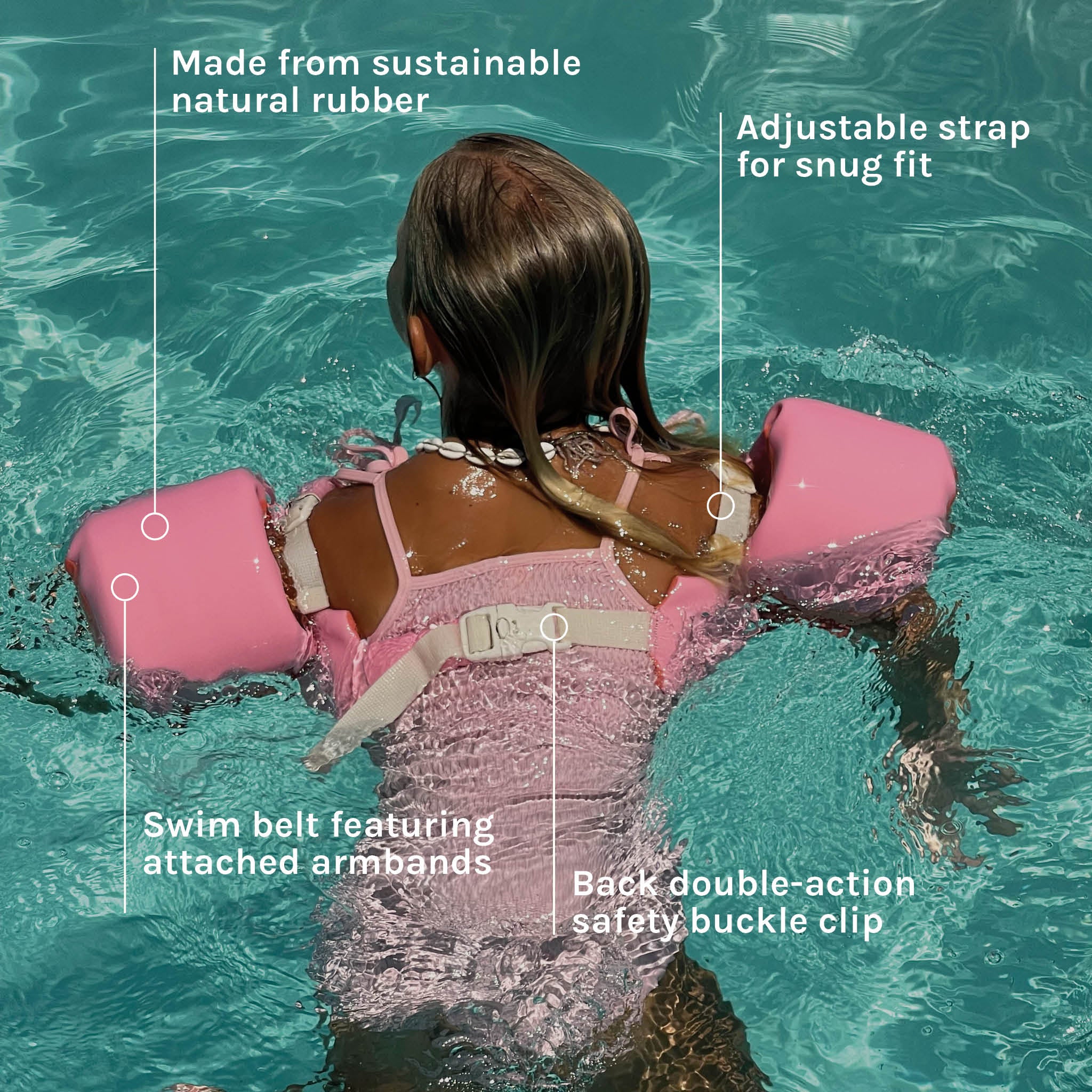 - Swim belt featuring attached armbands for enhanced swimming freedom.