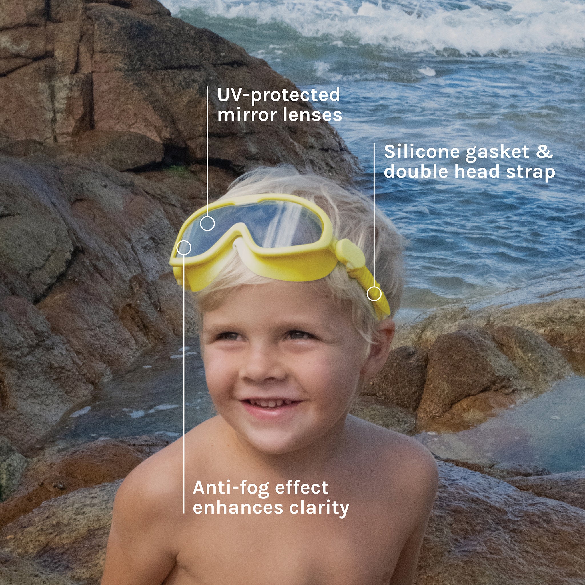 Dive into underwater adventures with our fun and friendly Swim Mask! Perfect for little swimmers, it offers clear vision and endless fun. Get ready to make a splash!