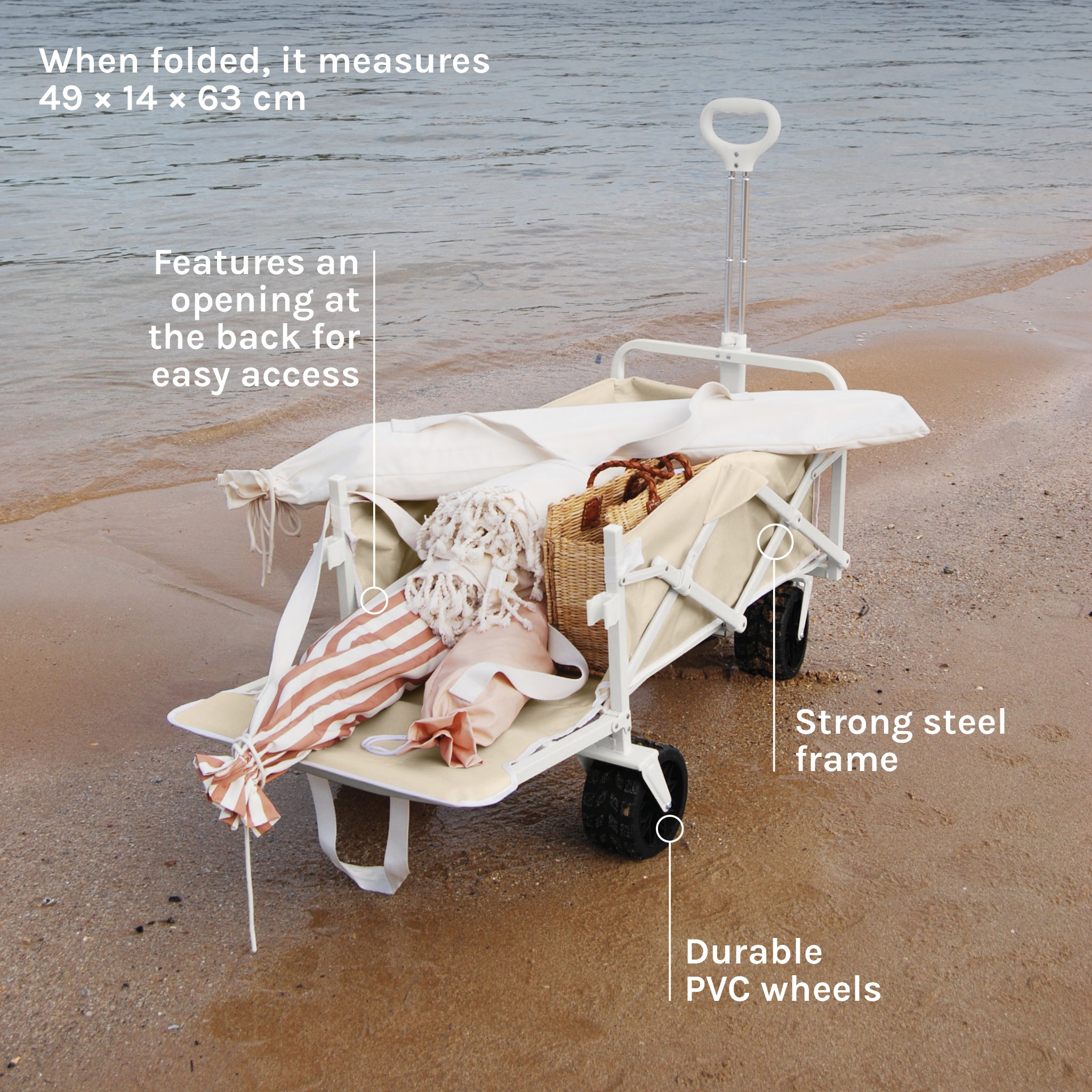 Designed for those who have their hands full. This heavy duty Beach Cart will transport everything you need for a long day spent lounging under the sun.