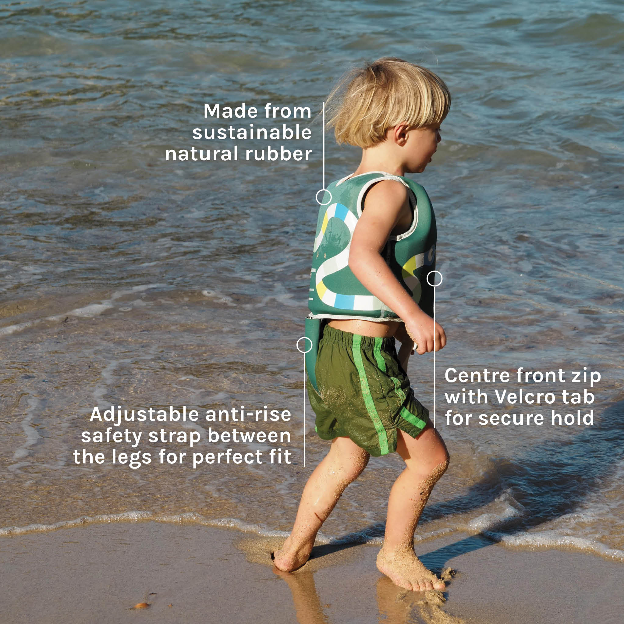 Our swim vests are built to meet safety standards through rigorous buoyancy and load testing. While the listed age and weight are recommendations, they reflect the tested safe performance range of each vest.