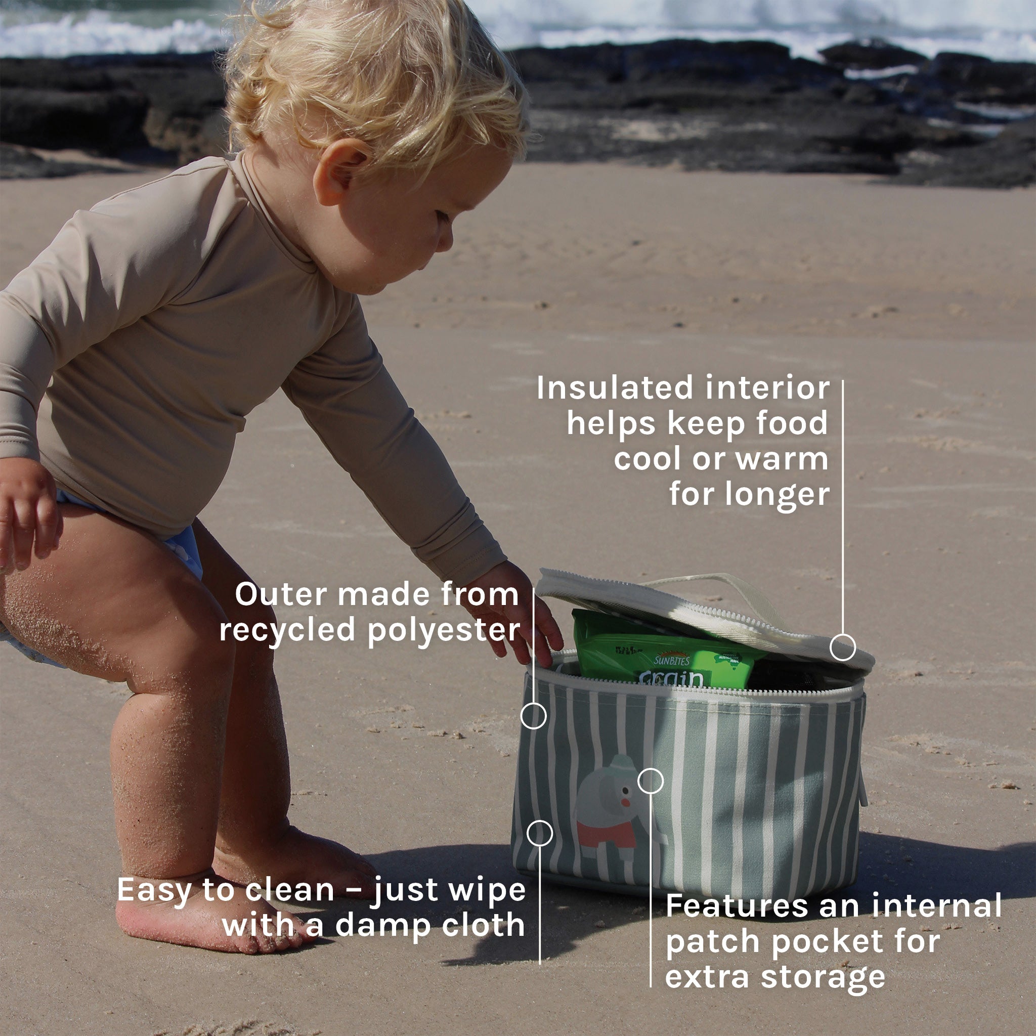 Made for little hands and snacks on the go. Whether it's a day at the beach or a picnic in the park. This go-to insulated Kids Lunch Bag will keep things cool.